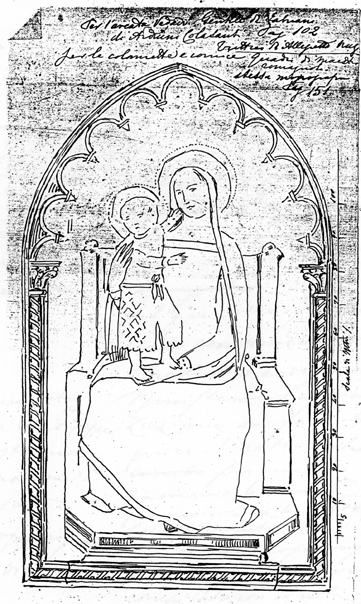 Un disegno di G. De Bacci Venuti della cornice proposta per la tavola di Allegretto Nuzi della Galleria Nazionale di Urbino